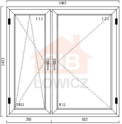 Podział okna: 580 mm / 885 mm, słupek stały